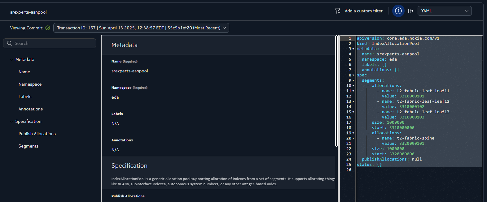 kubectl -n eda get indexallocationpool srexperts-asnpool -o yaml