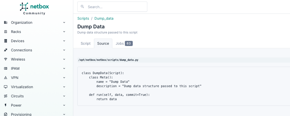 You'll may notice that devices don't have IPs assigned to interface within Netbox. Because each lab environment has unique IP space, we have to dynamically add IP addresses to each Netbox instance. The next instructions will show you an example of how a custom script is run interactively and what they can do.