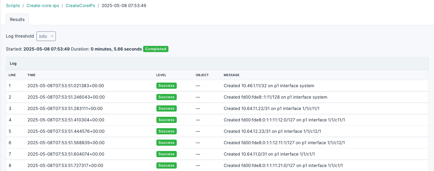 • Navigate to Customization > Scripts > Create IP interfaces on core nodes