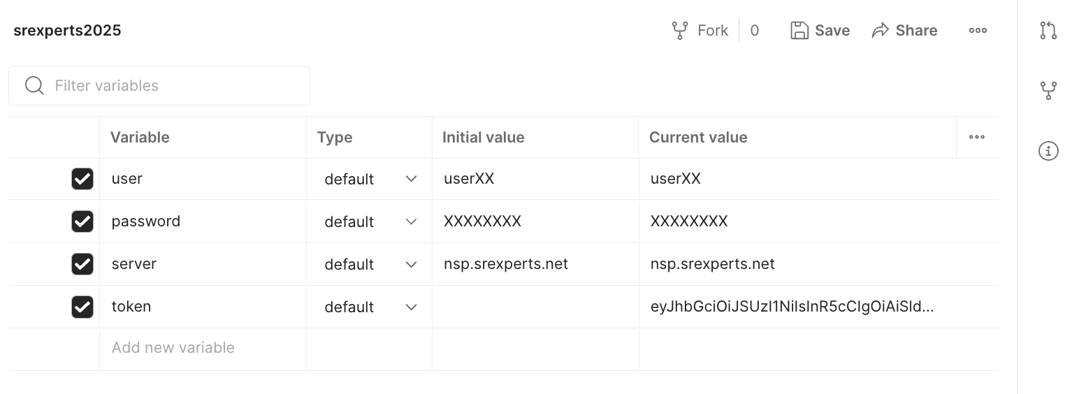 The POSTMAN collection hosted on the developer portal made available by the NSP product-team stores the auth-token under Globals. The script used in this activity stores the token in the environment instead, which allows toggling between different environments without the need to reconnect.