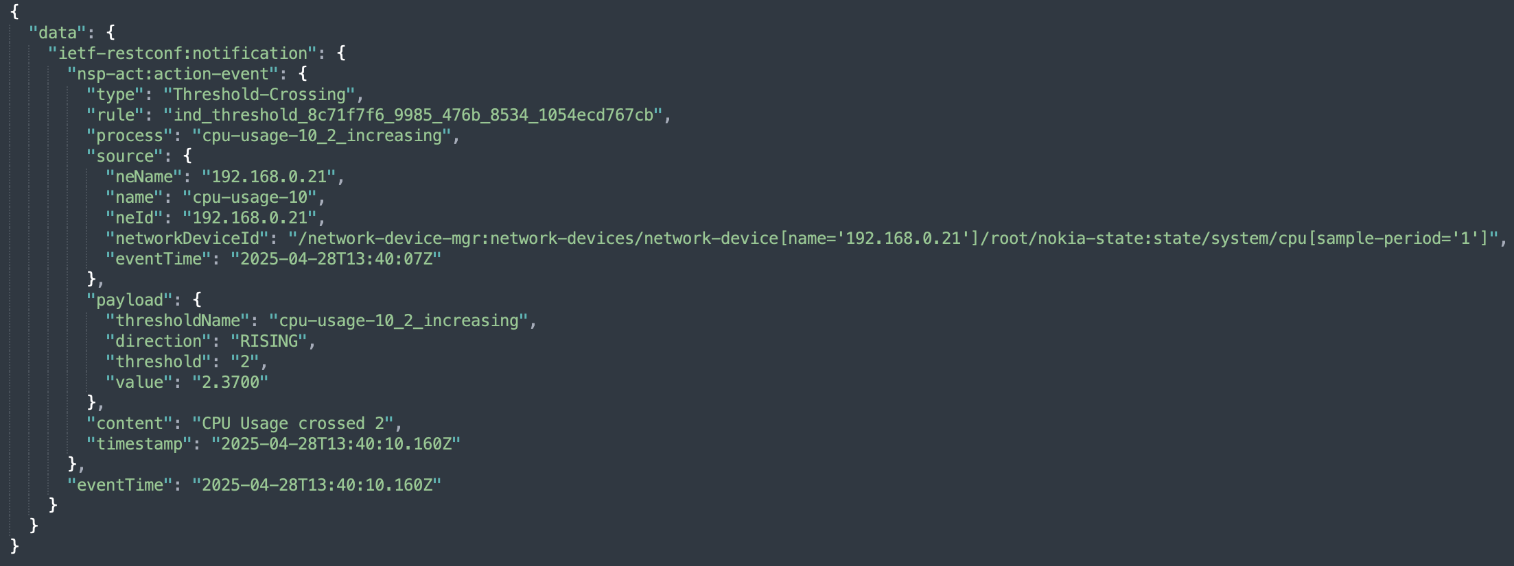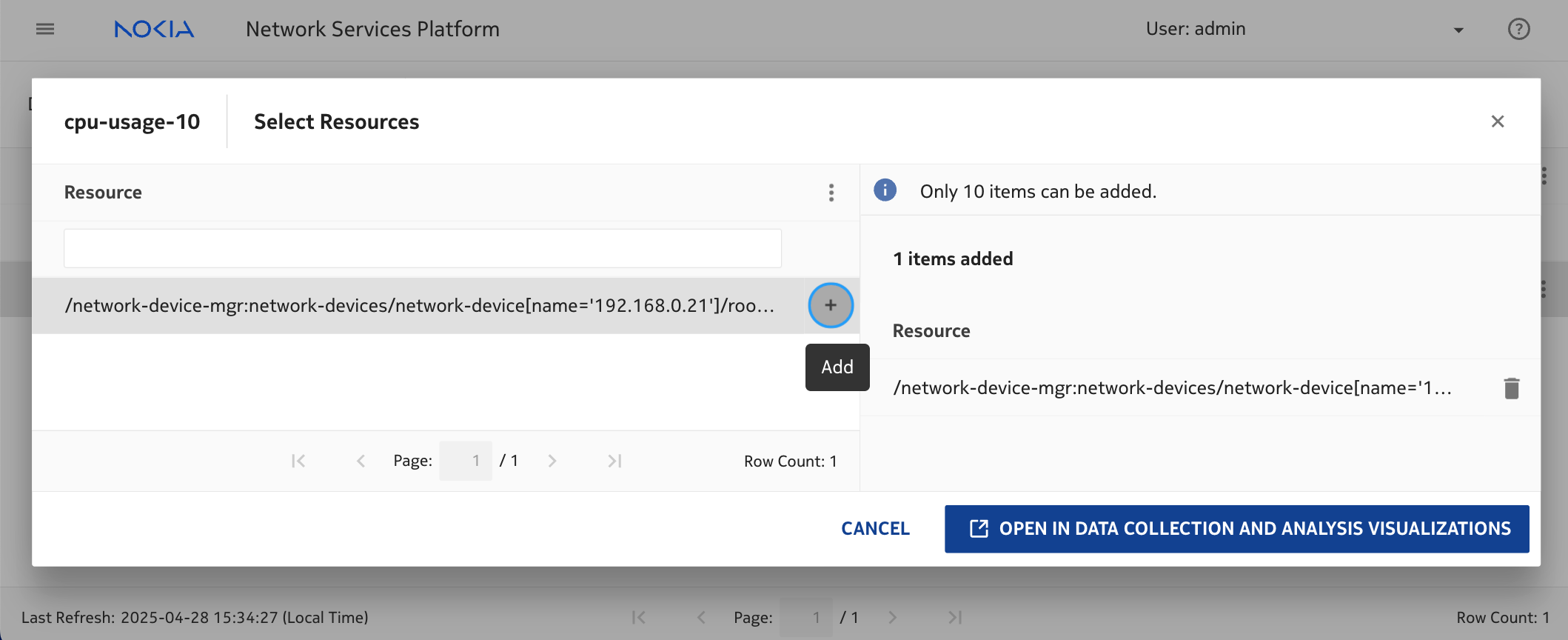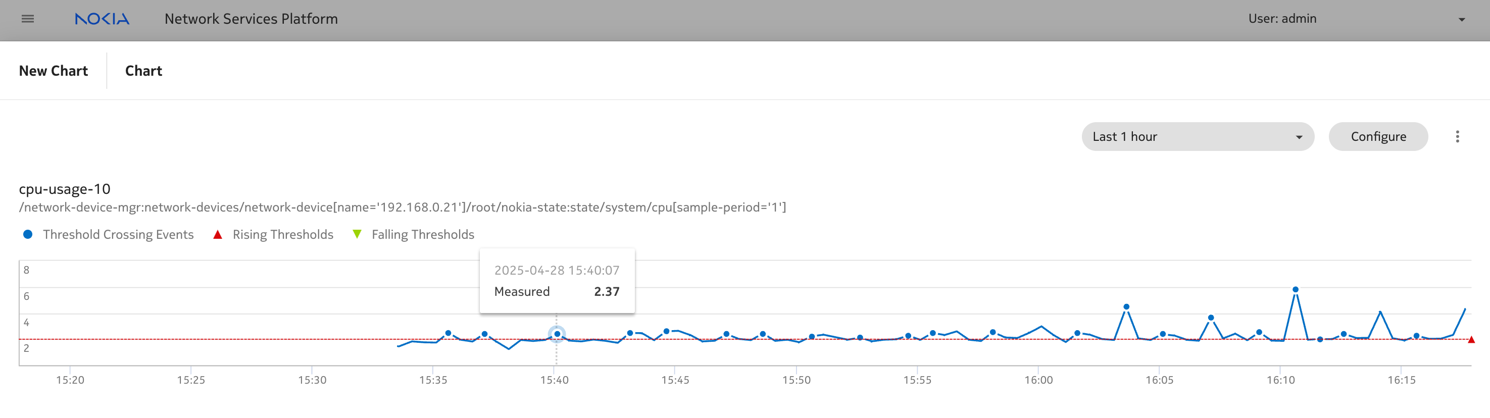 Explore NSP Data Collection App to create TCA on CPU usage and visualize the threshold crossing in NSP Data Collection Viewer.