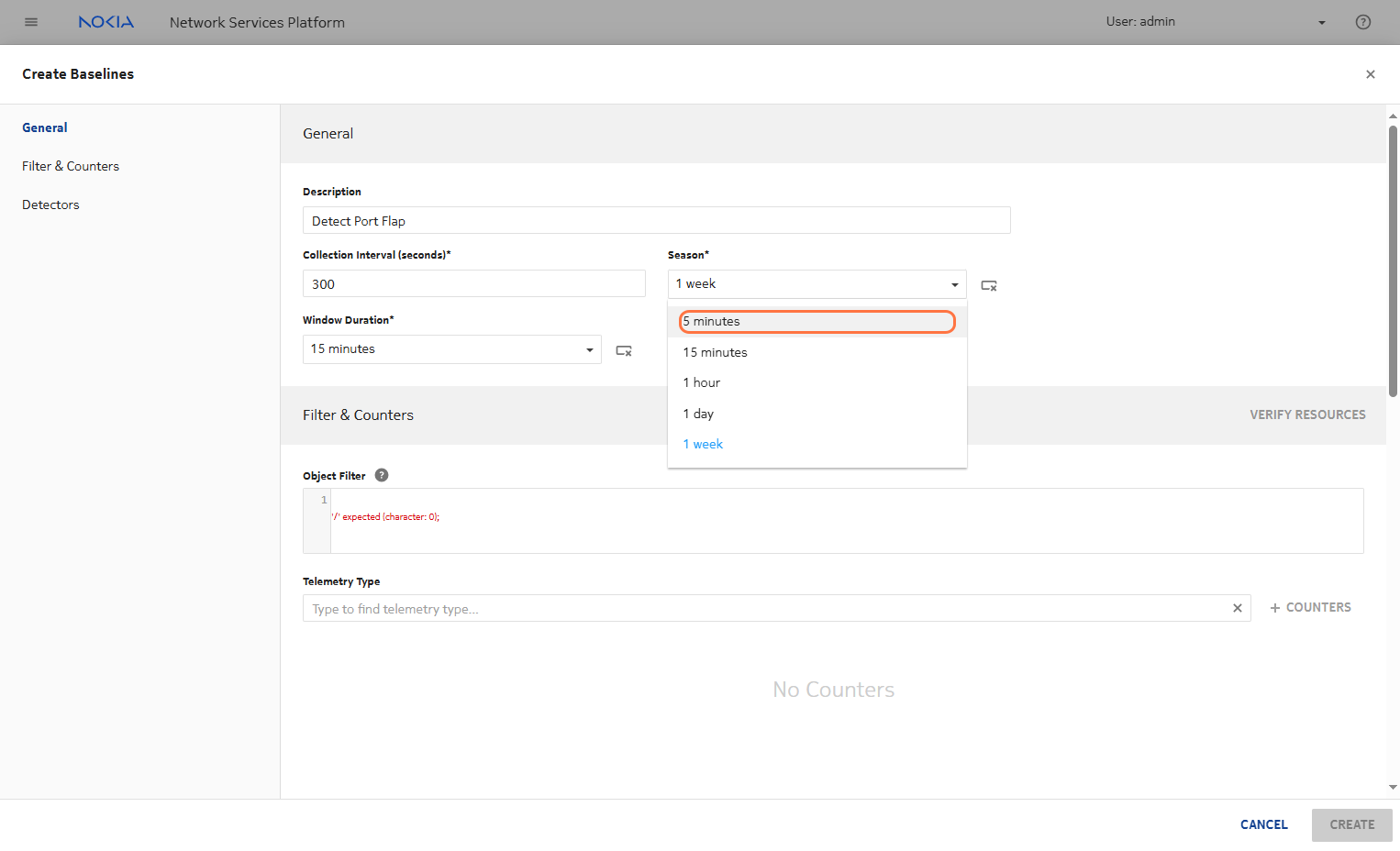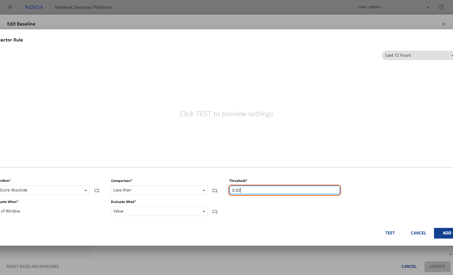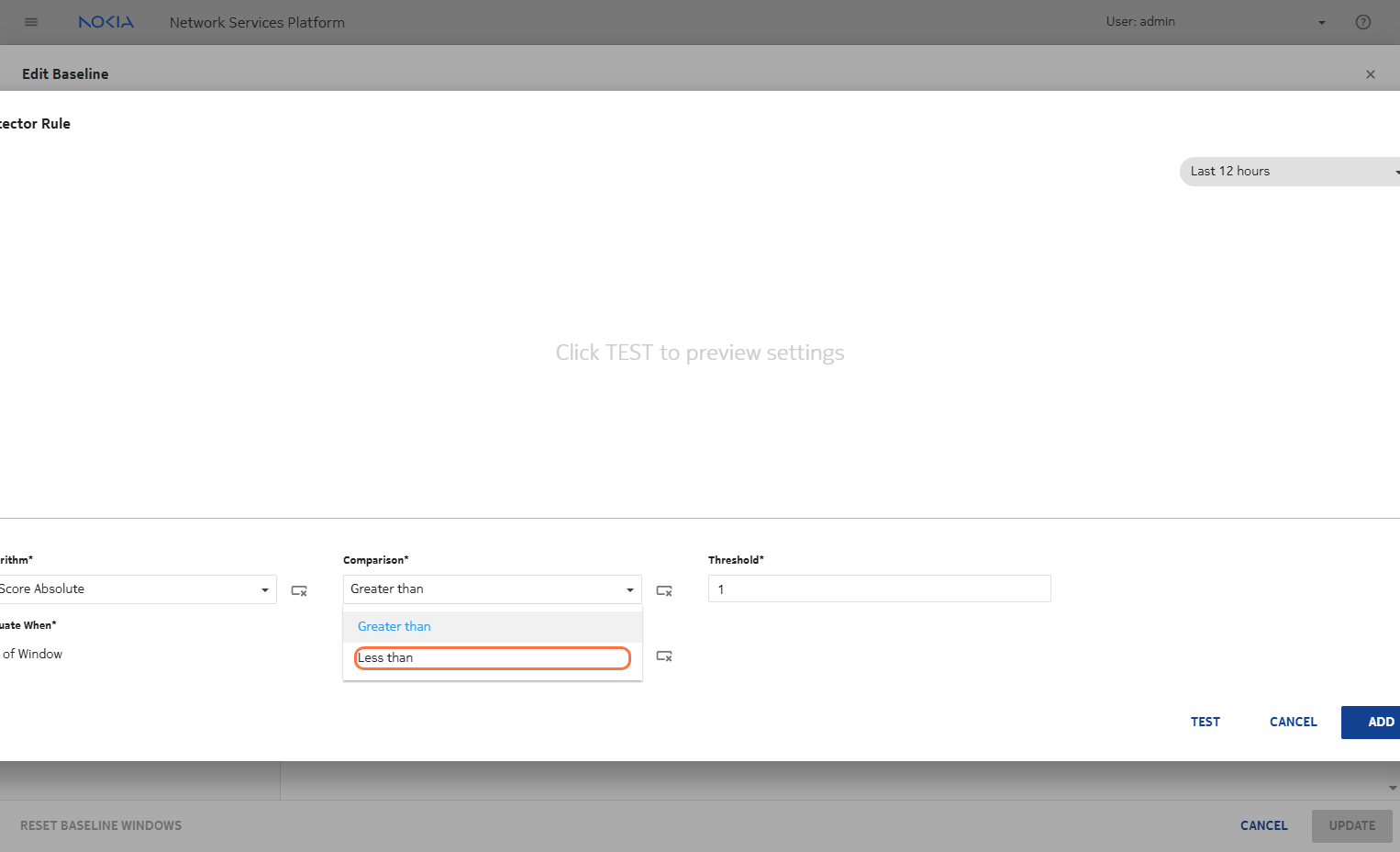 Based on the seasonality and window length, the detector rule will begin to apply. You need to configure the comparator to detect values less than a threshold close to 0. This helps identify anomalies such as port flapping, where there is a sudden drop in the metric value toward zero.