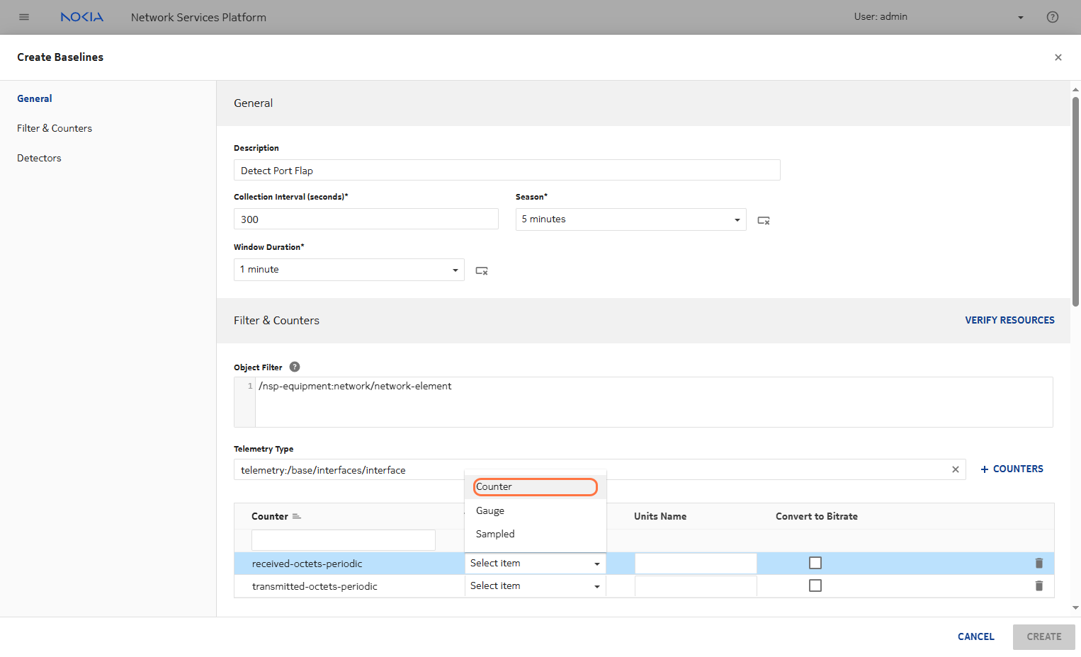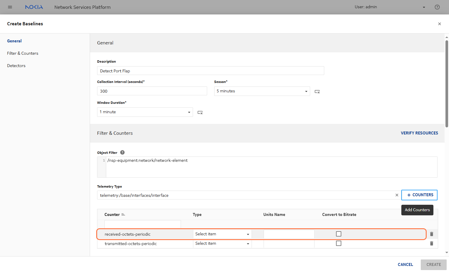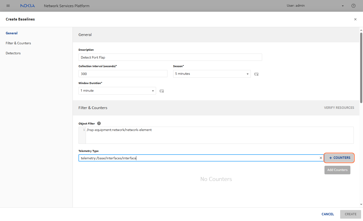 Click on COUNTERS for data aggregation