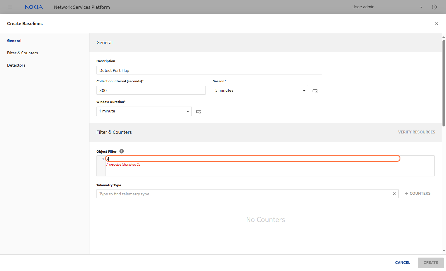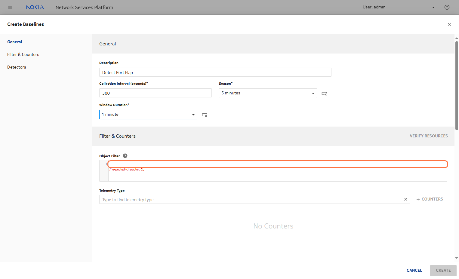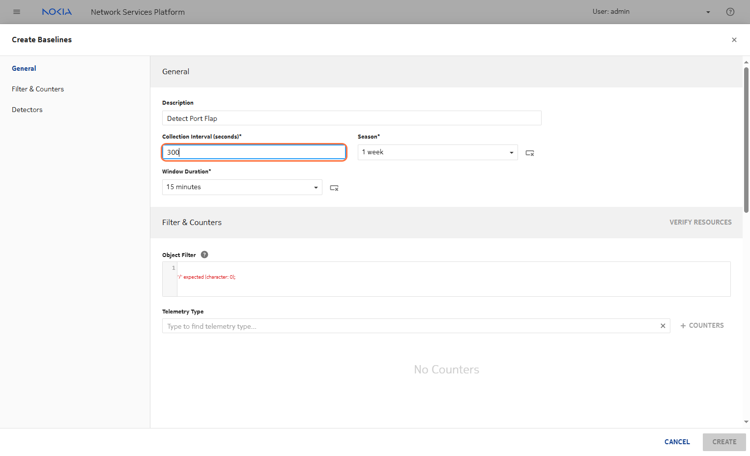 Click on COUNTERS for data aggregation