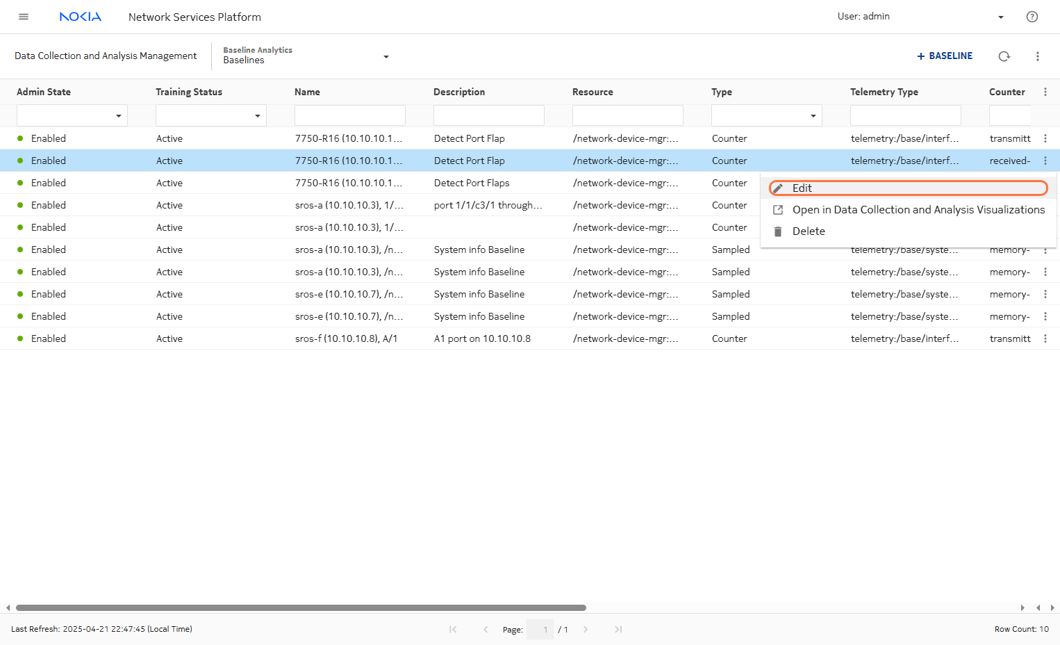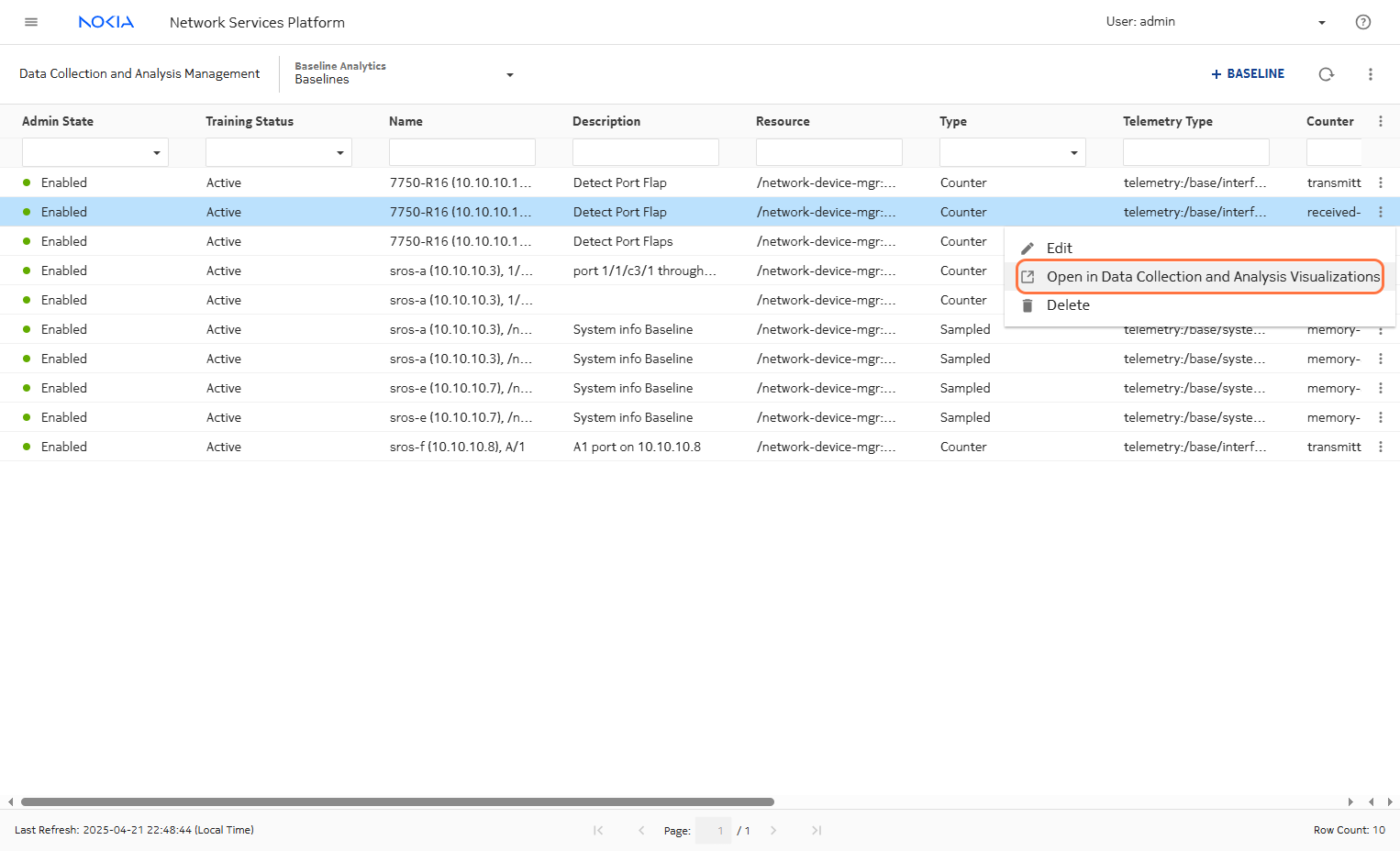 Select the router or resource where you want to apply this baseline