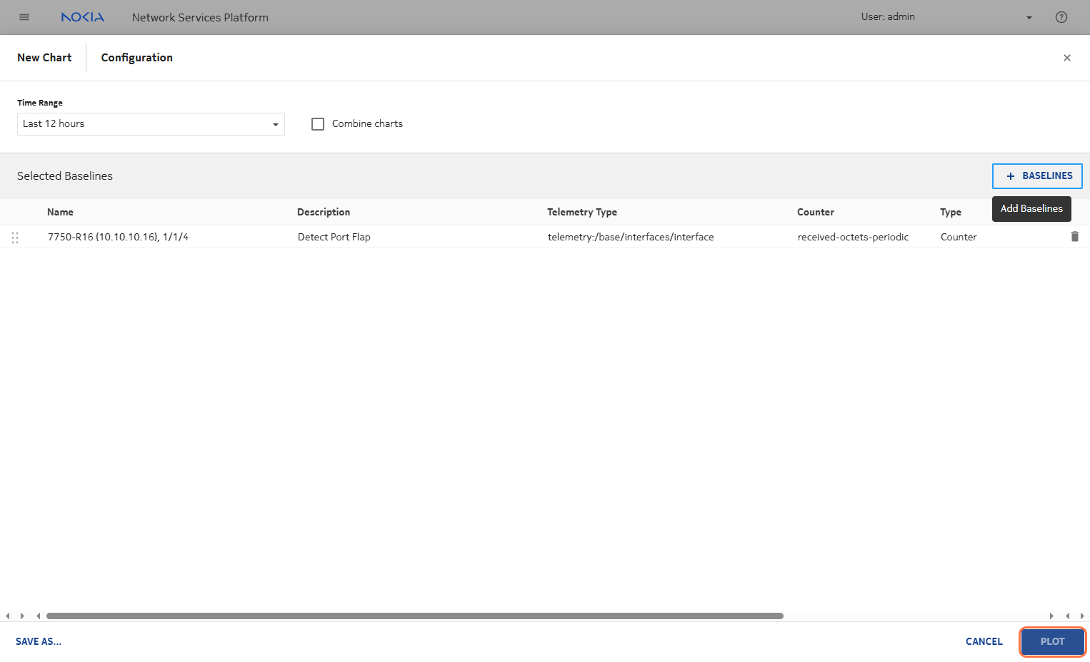 Use high frequency ping (rapid, large mtu) to generate some traffic to ensure hitting the baseline. Continue monitoring the plotter.